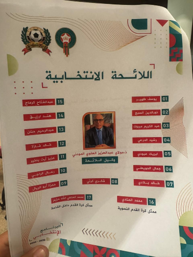 وضمّت لائحة عبد العزيز العلوي المودني مجموعة من الأسماء المعروفة في الساحة الرياضية الجهوية، حيث تم اختيار يوسف ظهير نائبًا أول، ونور الدين السبع نائبًا ثانيًا، وعبد الكريم مبروك نائبًا ثالثًا، إلى جانب كل من عبد الفتاح كرماح وعزيز آيت بلخير، إضافة إلى أسماء أخرى تحظى بمكانتها واحترامها داخل المشهد الرياضي المراكش