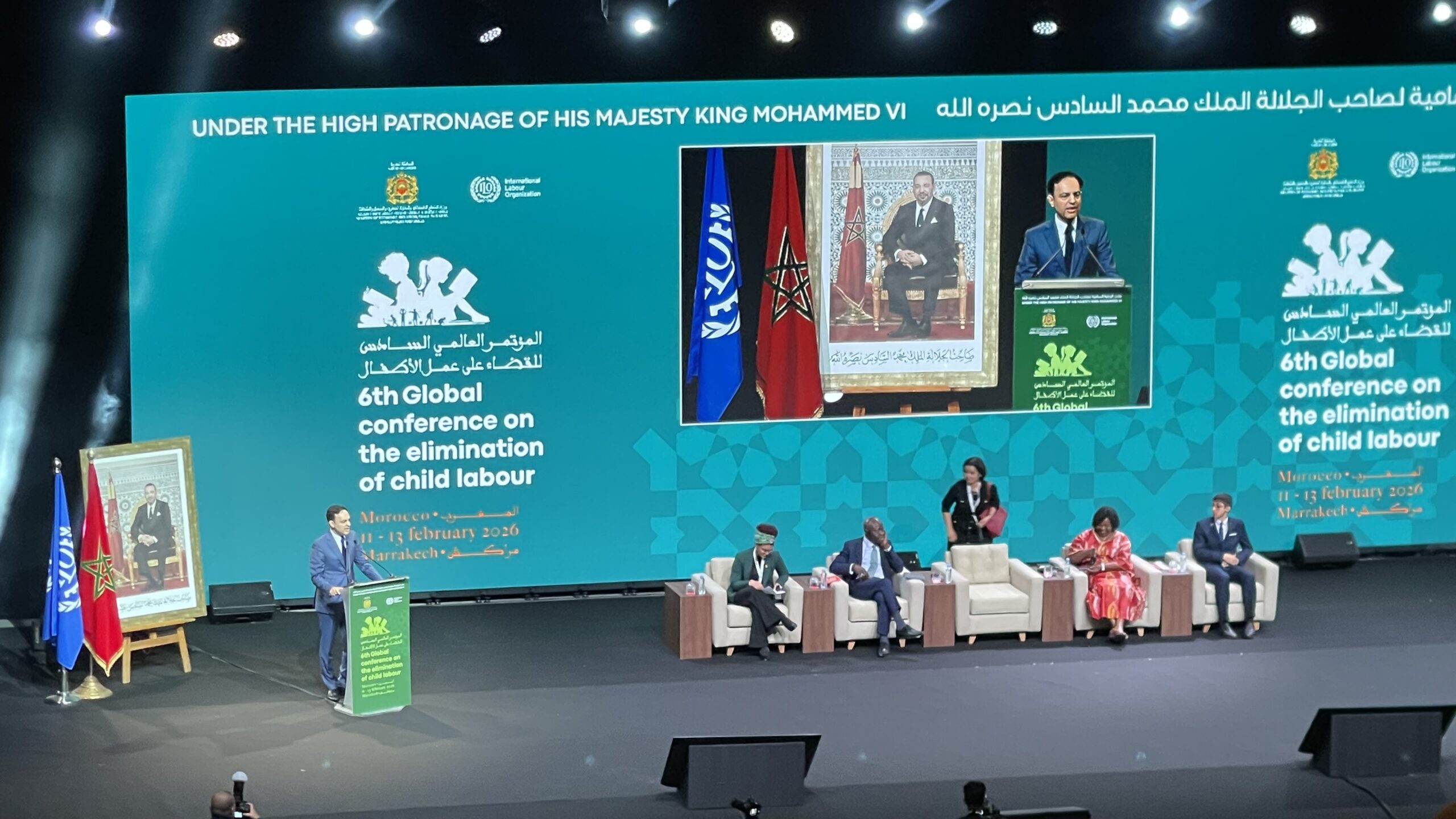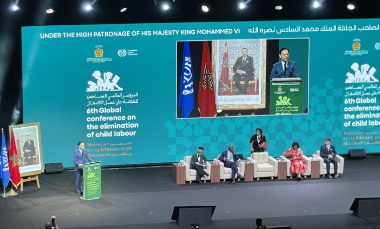 انطلقت، اليوم الاربعاء، أولى جلسات المؤتمر العالمي السادس للقضاء على عمل الأطفال، الذي تنظمه وزارة الإدماج الاقتصادي والمقاولة الصغرى والتشغيل والكفاءات بشراكة مع منظمة العمل الدولية، تحت الرعاية السامية لصاحب الجلالة الملك محمد السادس، بقصر المؤتمرات بمدينة مراكش.